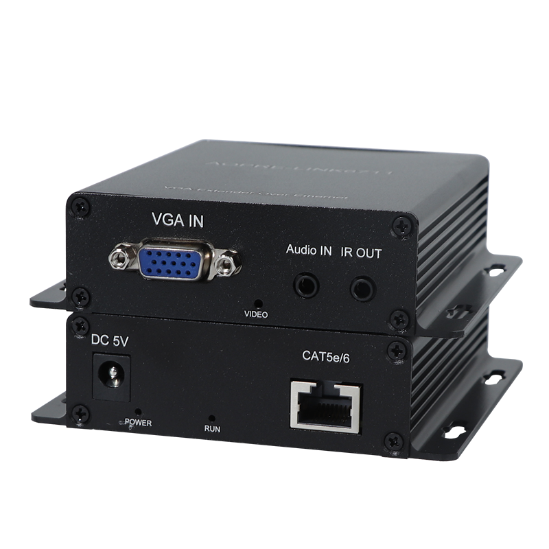 商用級VGA音視頻光端機用于延長傳輸VGA音視頻信號,通常在VGA線極限長度無法滿足傳輸距離的情況下使用。本產品是通過CAT5e/6類網線VGA音視頻信號高清傳輸至200米內的用戶端,設備支持TCP/IP網絡協議,可通過交換機實現一個發射機對多個接收機傳輸,遠距離傳輸的同時支持紅外回傳,獨立音頻傳輸,可在顯示器端遠程控制信號源(主機-KVM,電視盒子-IR紅外),在為用戶降低成本的同時保證信號的穩定。